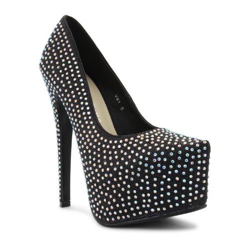 Add some glitter to your outfit with these gorgeous platform court shoes. The shoes feature a super high stiletto heel, concealed platform and a diamante covered outer. Wear with a simple black dress for a fabulous evening outfit - great for parties and nights out. Available in a choice of seven different colours