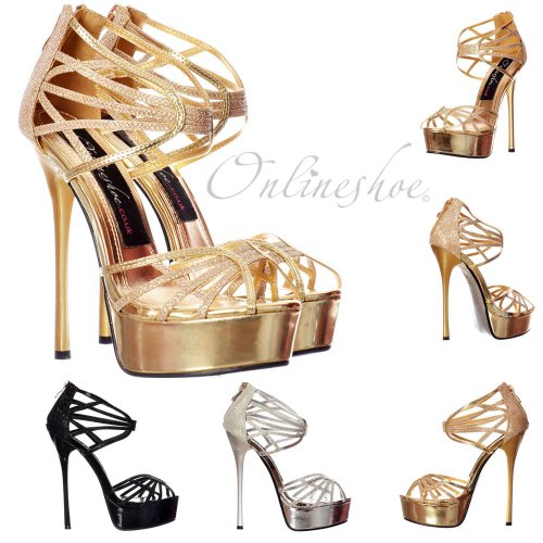 Onlineshoe offer Onlineshoe Women's Peep Toe Glitter Platform Strappy Gladiator Party Shoe Pump UK7 - EU40 - US9 - AU8 Gold. This awesome product currently limited units, you can buy it now for £31.99, You save -