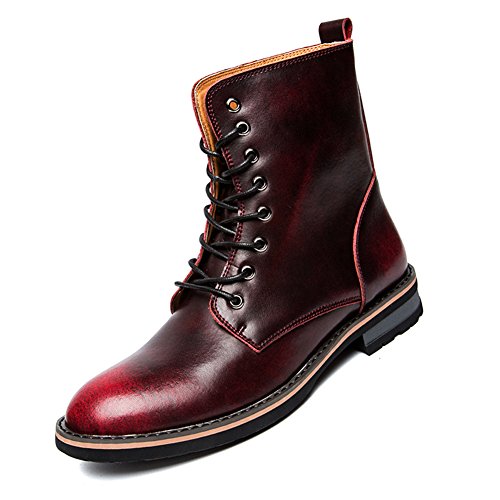 Best Seller! XiaoYouYu Men's Retro Lace up Military Martin Ankle Boots Wine Red, 8 UK Review